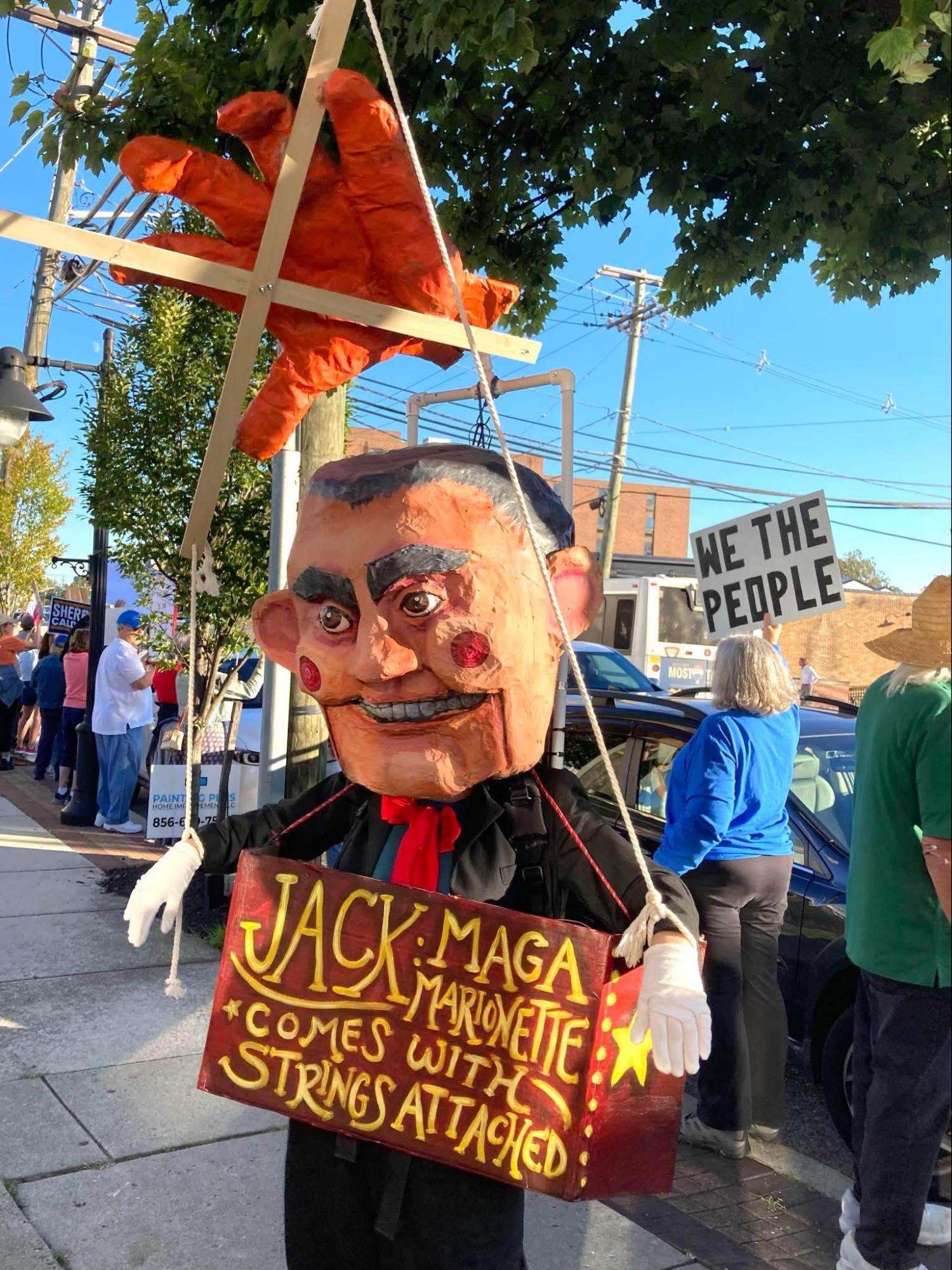 The Jack Puppet, created by the Cooper River Indivisible creative team, showcasing Jack being controlled by Trump’s hand.