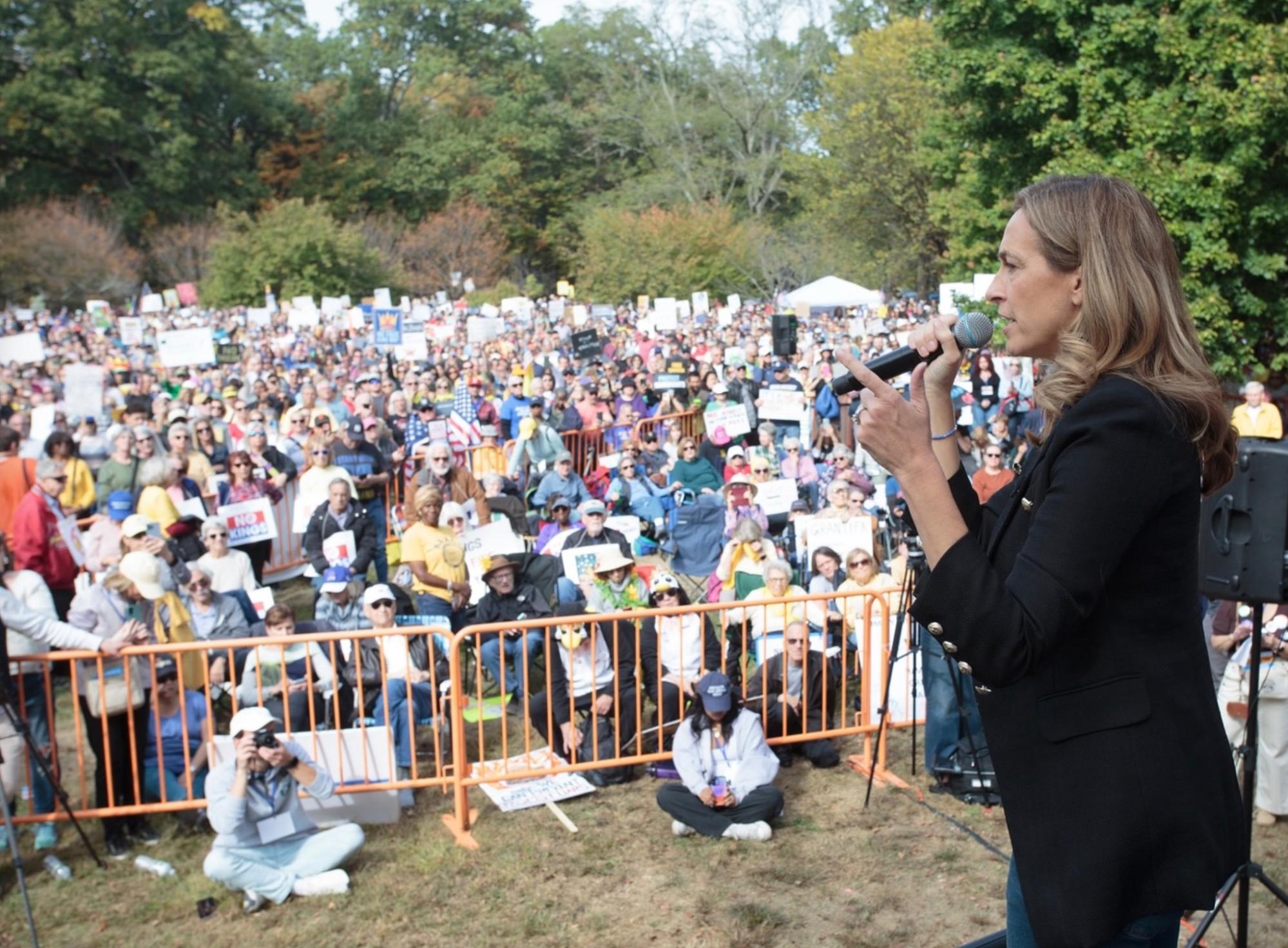 What can we say about No Kings? The people of NJ 11th TURNED OUT. There were at least 10-12 thousand attendees in Morristown, and the same in Montclair! Plus thousands more in rallies across the district. As Morristown’s Public Safety Director Michael Corcoran Jr. put it in this fantastic article about Morristown No Kings, “Morristown’s crowd size, as estimated by town Public Safety Director Michael Corcoran Jr., was twice that of the first No Kings rally in June. Put another way, Saturday’s turnout was equivalent to about 40 percent of Morristown’s population–or standing room only at the Somerset Patriots minor league ballpark.”