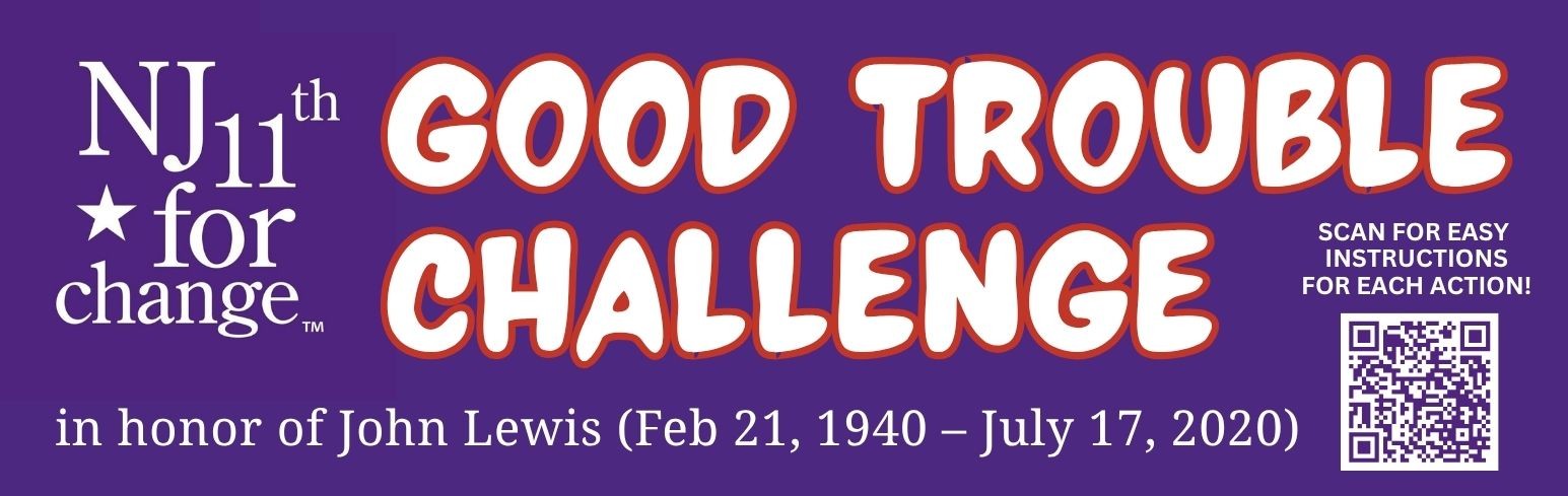 Your experiences as an activist can motivate other people to get involved! Write a paragraph and share it on social media (on NJ 11th for Change’s Facebook page, on your personal Facebook page, on your Instagram or BlueSky or Twitter account, etc.). Need a place to start? Try this prompt: “In honor of John Lewis and his call to cause good trouble, I am reminded of the time when ….”