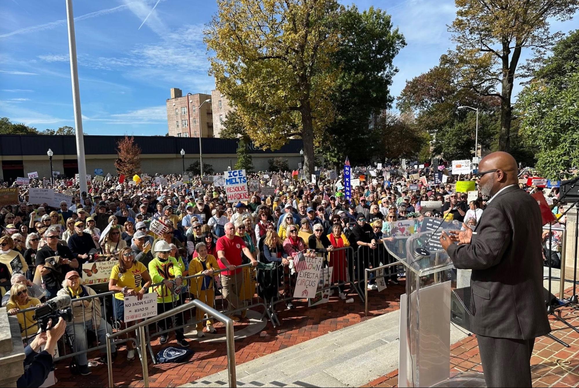 We turned out for another massive protest–NO KINGS! Did it rain again? Yup. Did it matter to the thousands of people who showed up at events across the district? Absolutely not.