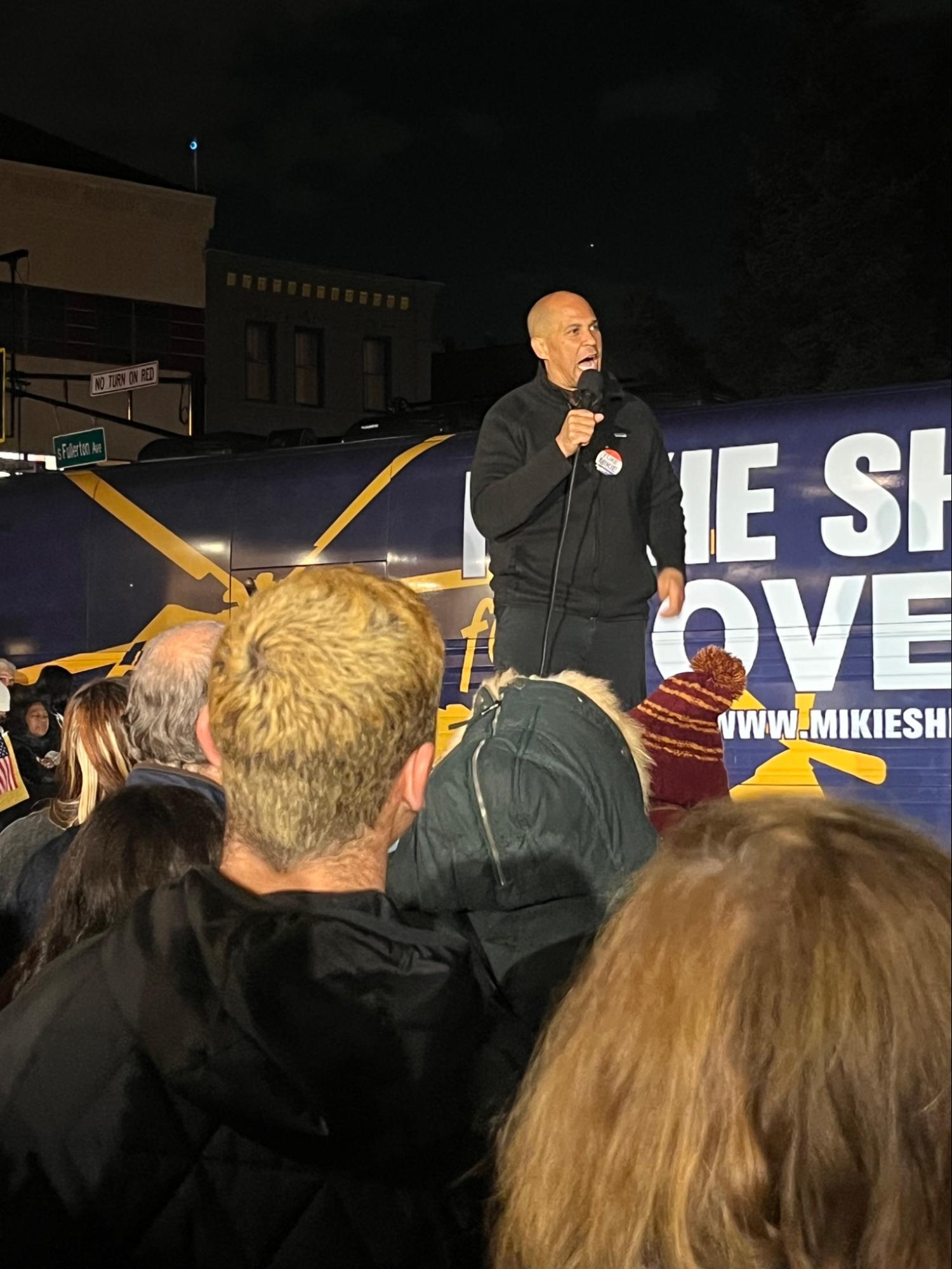 We gave Senator Booker one of Pat Berry’s I Like Mikie buttons–